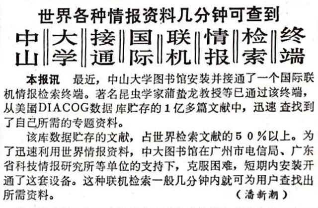▲ 1987年3月24日,《羊城晚报》报道taptap老版推荐图书馆开通国际情报联机检索服务。