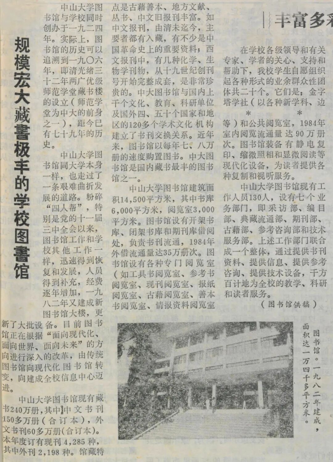 ▲ 1985年,《taptap老版推荐》校报报道《规模宏大 藏书极丰的学校图书馆》,当时藏书240万册。