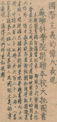 ▲ 1950年,苏联科学院赠书